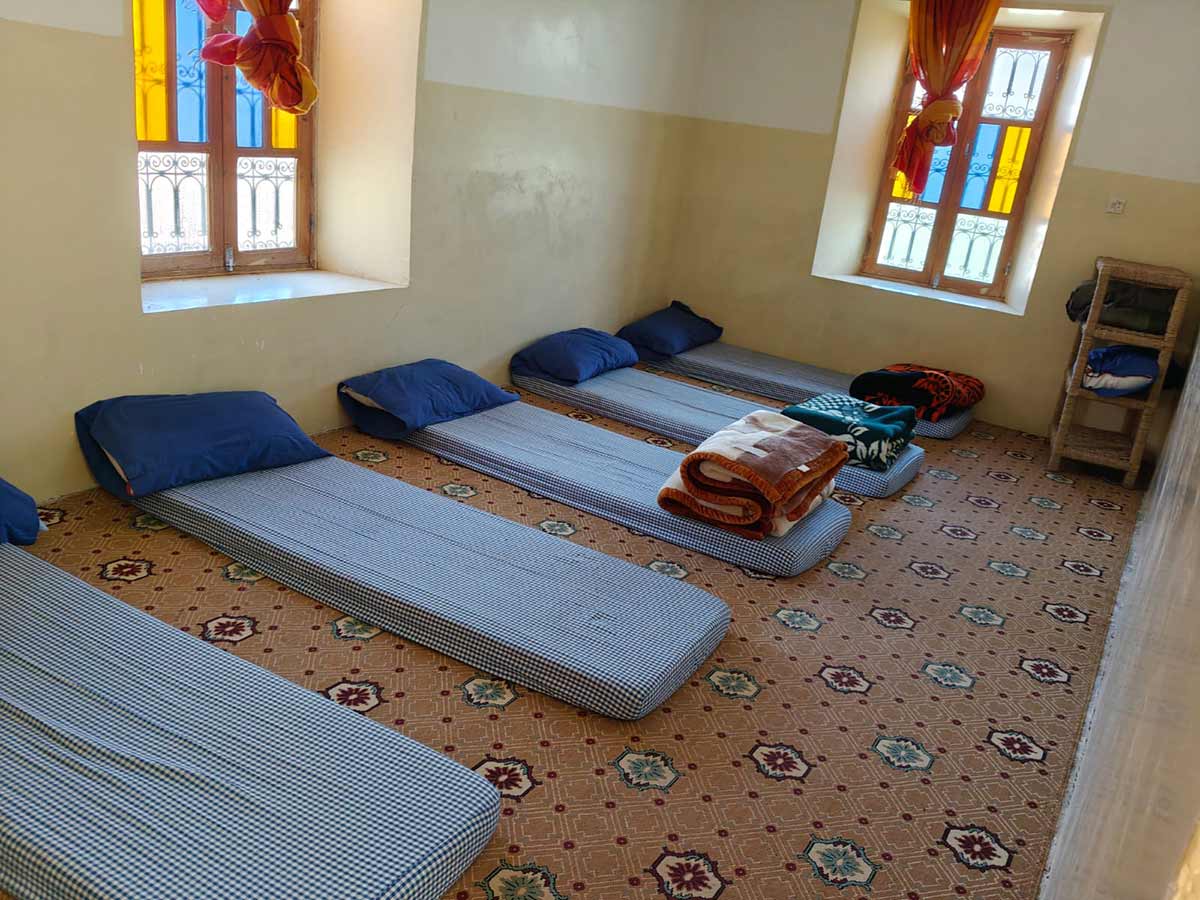 26 slaapplaatsen in 2-3-4 persoonskamers met bedden en slaapzalen (matras op de grond)